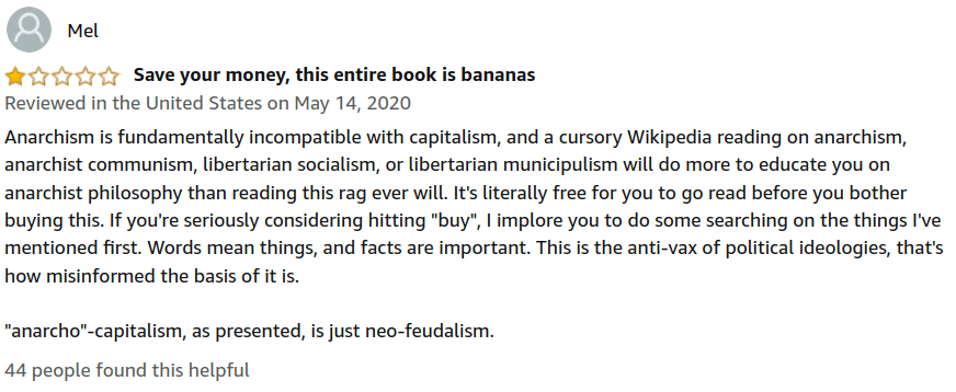 I waited a year before reading any online reviews of The Ethics of Anarcho-Capitalism. My goal was to collect the feedback all at once so I could use it to improve the book and release an update.